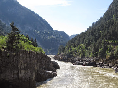 The highlight of today was a ride down the Hell's Gate tram across the Fraser River. The tram operator told us that the mountains behind us (the ones to the right of us as we'd been driving) were still in the Cascade Range. The mountains the tram was connected to on the other side (the ones to the left of us as we'd been driving) were in the Pacific Range.